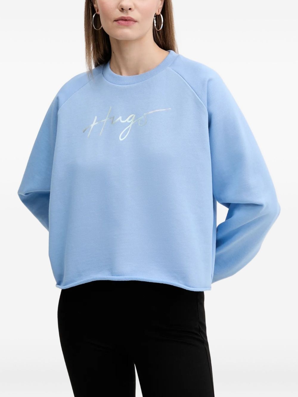 logo-print sweatshirt Highlights - Light blue - Long raglan sleeves - Cropped - Crew neck - Embroidered logo Imported Composition Cotton 100% Washing instructions Read Manufacturer Guidelines