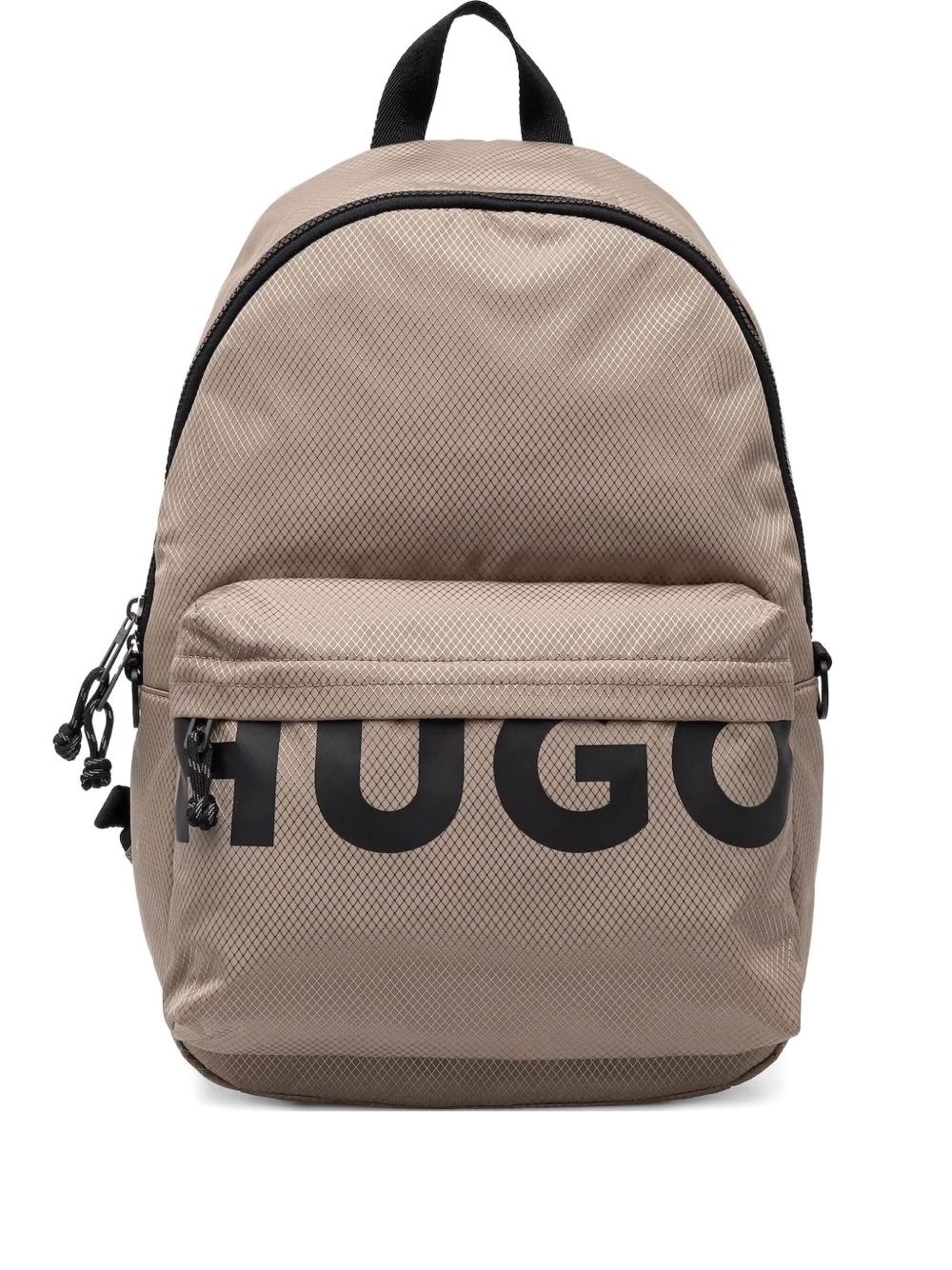 logo-printed backpack Highlights - Beige - Front zip pocket - Adjustable shoulder straps - Logo detailing - Main zip compartment Imported Composition Outer: Recycled Polyester 100% SIZE & FIT Measurement DEPTH 4.72 in(12 cm) HEIGHT 16.92 in(43 cm) WIDTH 11.02 in(28 cm)