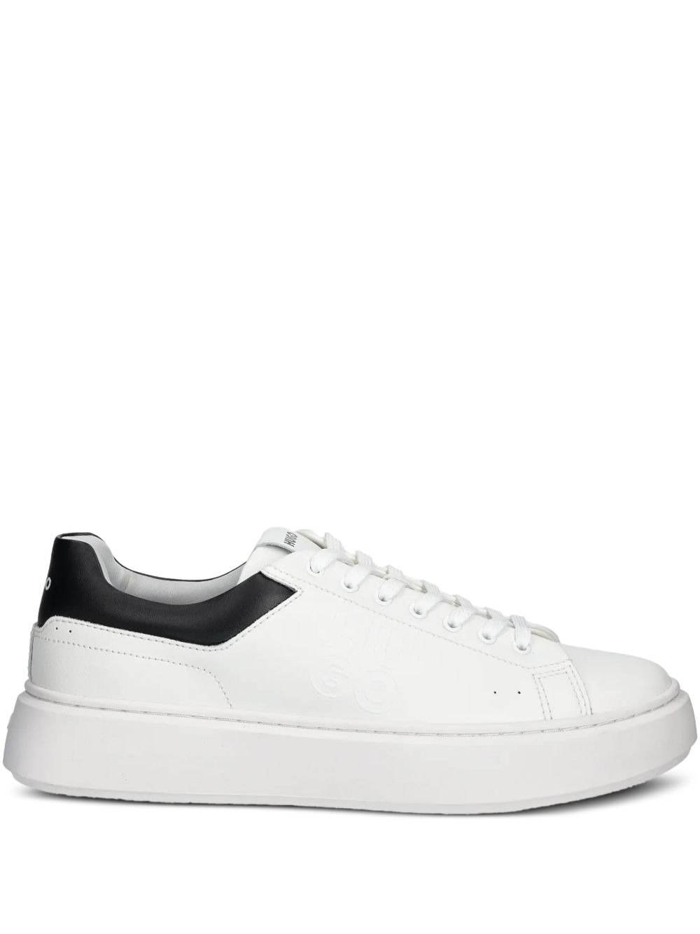 low-top sneakers Highlights - White - Front lace-up fastening - Contrasting branded heel counter - Logo patch at the tongue - Flat rubber sole Imported Composition Sole: Rubber 100% Lining: Polyester 100% Outer: Recycled Leather 64%, Polyurethane 36%