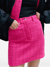 mid-rise tweed miniskirt Highlights - Pink - Tweed - Mid-rise - Concealed fly and button fastening - Belt loops - Two rounded pockets to the sides - Thigh-length - Straight hem Imported Composition Acrylic 68%, Polyester 24%, Other Materials 8% Washing instructions Read Manufacturer Guidelines