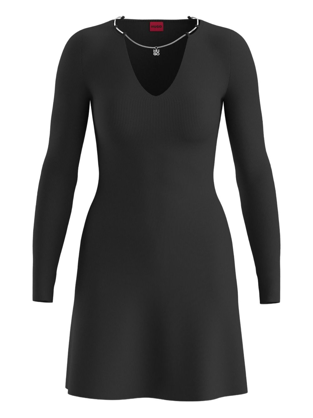 necklace-detail mini dress Highlights - Black - V-neck - Long sleeves - A-line skirt - Embellished neckline Imported Composition Viscose 65%, Polyamide 35% Washing instructions Read Manufacturer Guidelines