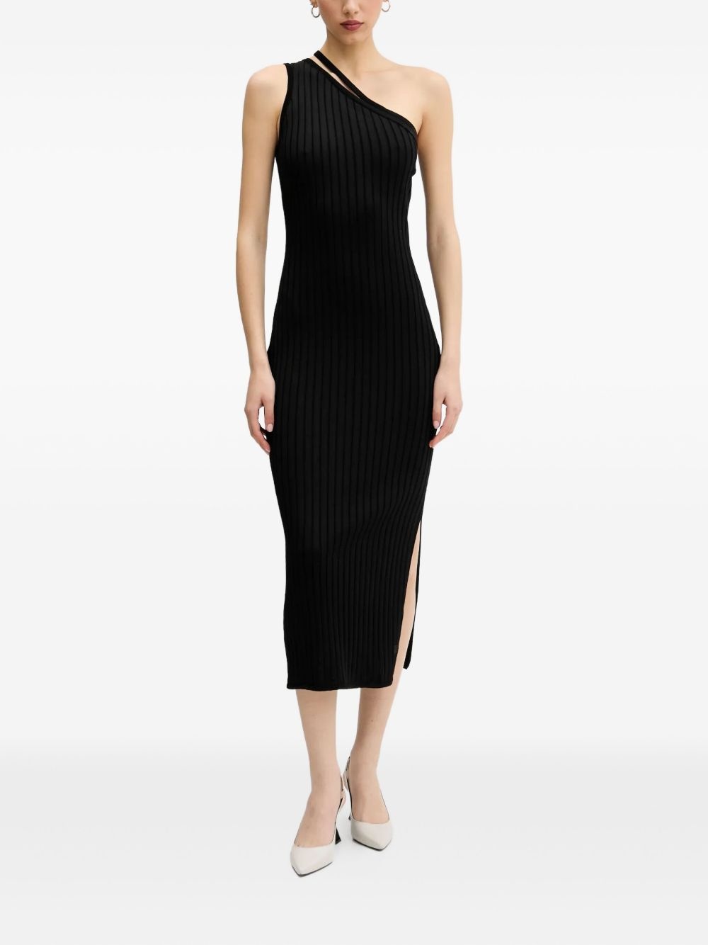 one-shoulder ribbed-knit midi dress Highlights - Black - Ribbed knit - Asymmetric neck - Straight hem - Sleeveless Imported Composition Viscose 68%, Polyamide 32% Washing instructions Machine Wash