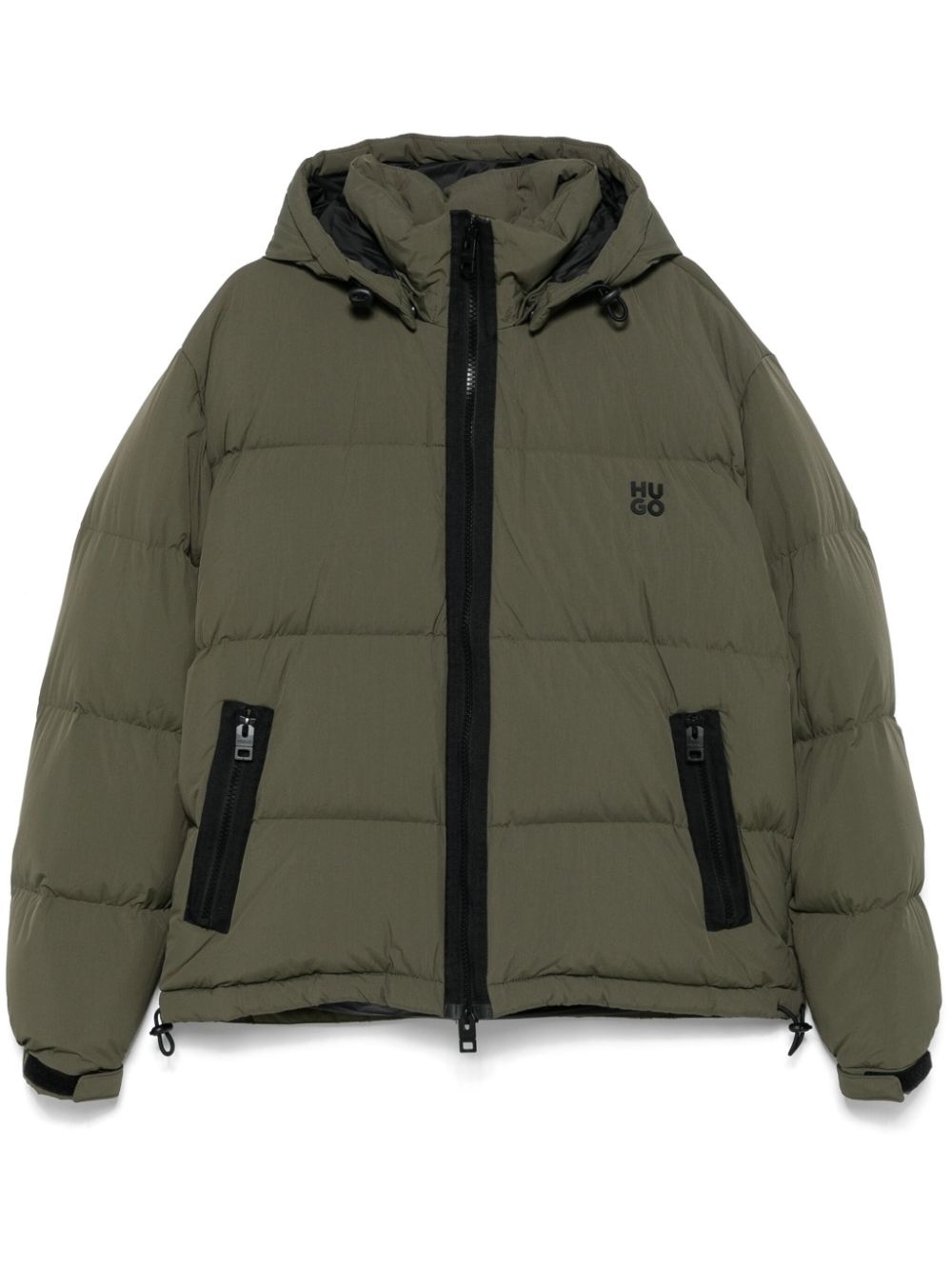padded jacket Highlights - Olive green - Front two-way zip fastening - Detachable drawstring hood - Two side zip-fastening pockets - Touch-strap cuffs Imported Composition Outer: Polyamide 100% Lining: Polyamide 100%, Duck Down 80%, Duck Feathers 20% SIZE & FIT FittingInformation Designed for a regular fit, allowing for a comfortably loose fit throughout the body The internal drawstring at the hem allows for fitted preferences Made from a padded non-stretch fabric, giving it no natural elasticity