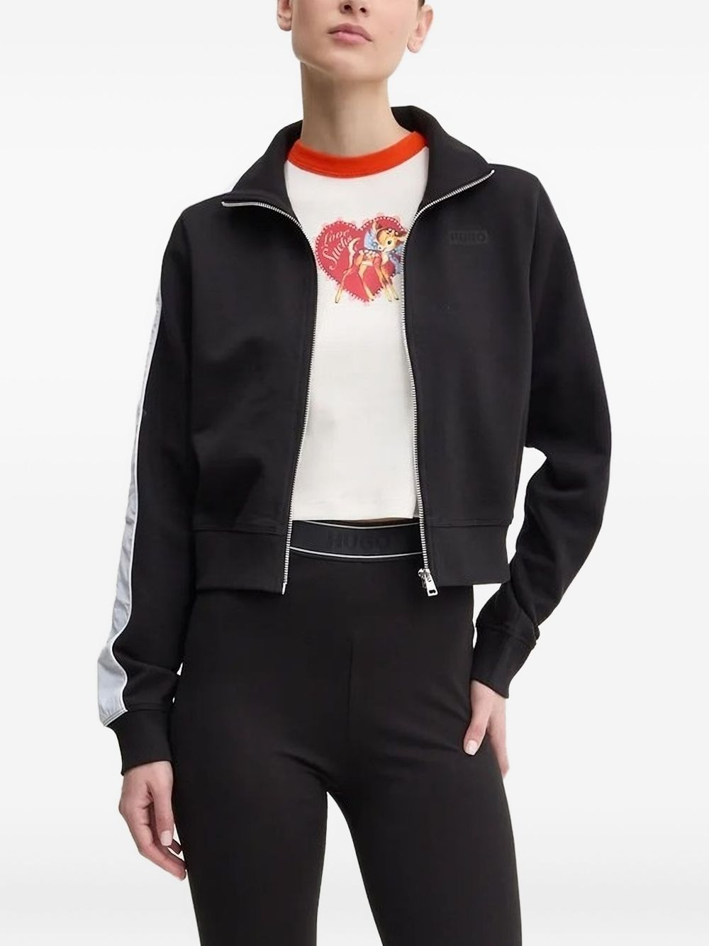 panelled zip-up top Highlights - Black - Ribbed fabric - Zip fastening - High neck - Panelled sleeves Imported Composition Fabric 100% Washing instructions Read Manufacturer Guidelines