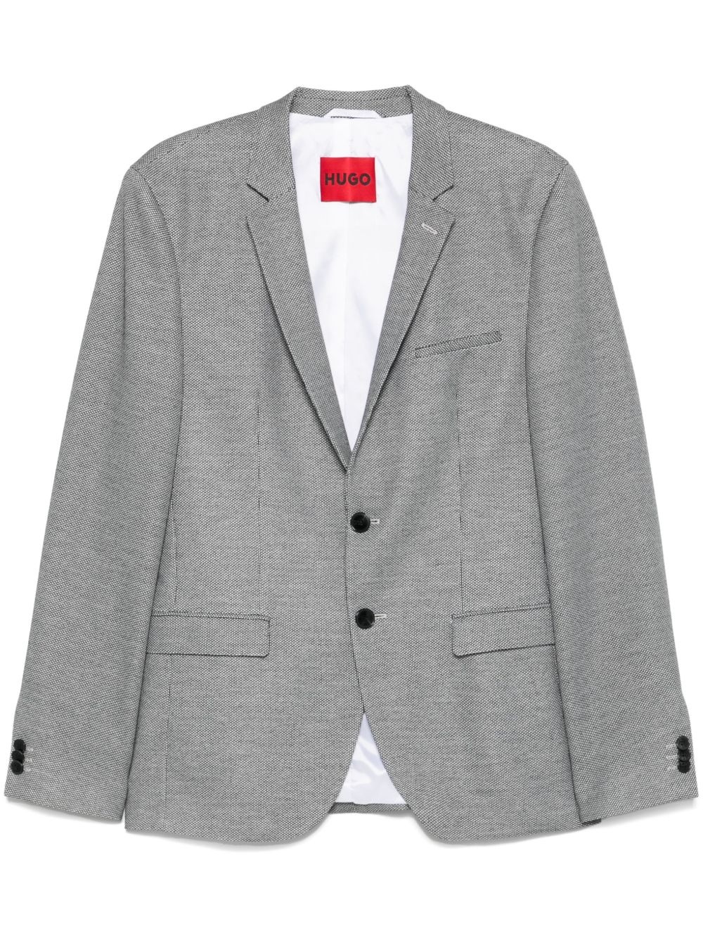 pattern-jacquard blazer Highlights - Black - Front button fastening - Chest welt pocket - Two front flap pockets - English rear vents Imported Composition Lining: Polyester 100% Outer: Polyester 87%, Viscose 10%, Elastane 3% Washing instructions Dry Clean Only