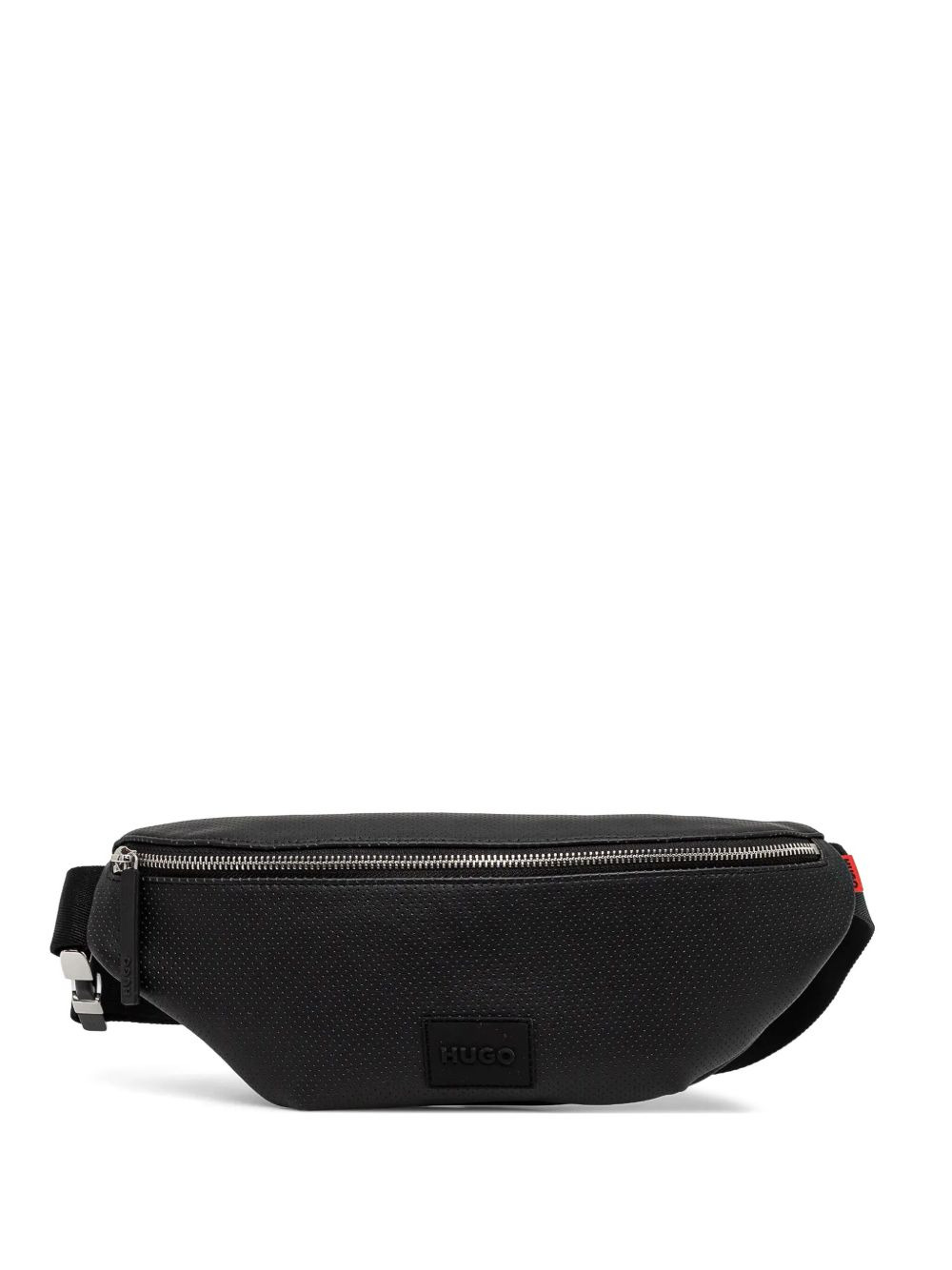 perforated faux-leather belt bag Highlights - Black - Front zip fastening - Adjustable waist strap - Internal patch pocket - Logo patch to the front Imported Composition Outer: Polyamide 100%, Recycled Polyurethane 62%, Polyester 30%, Polyurethane 8% Lining: Polyester 100% SIZE & FIT Measurement DEPTH 3.14 in(8 cm) HEIGHT 5.51 in(14 cm) WIDTH 12.99 in(33 cm)