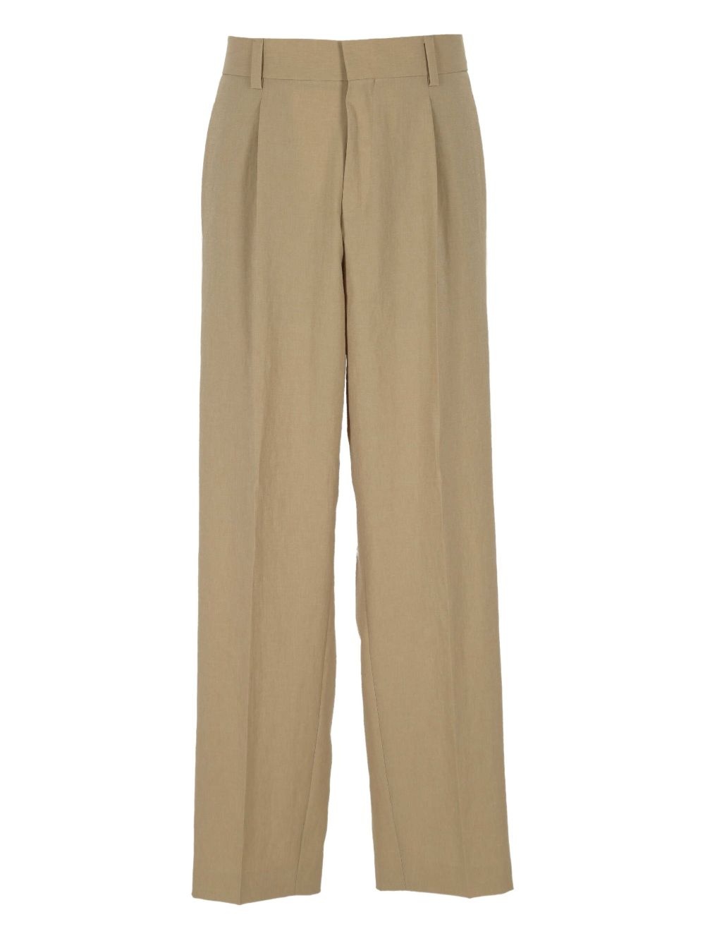 pleated wide-leg trousers Highlights - Beige - Pleat detail - Side stripe - Two side welt pockets - Two rear welt pockets - Concealed front fastening Imported Composition Fabric 100% Washing instructions Read Manufacturer Guidelines
