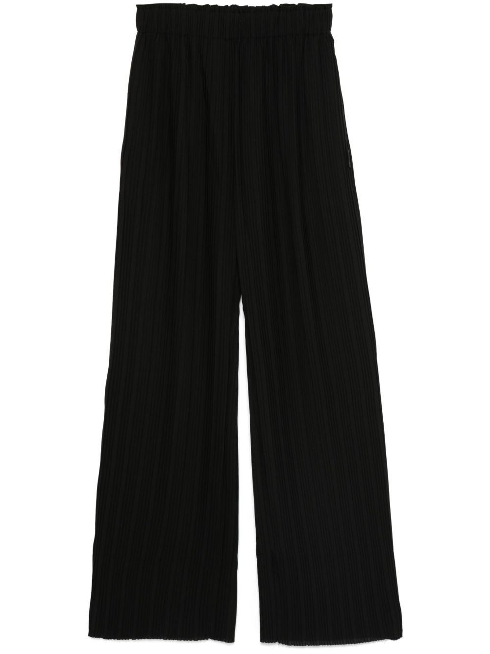 plisse crepe trousers Highlights - Black - Recycled polyester - Crepe texture - Plisse effect - Elasticated waistband - Slip-on style - Two side slit pockets - Wide leg Imported Composition Recycled Polyester 100% SIZE & FIT Model measurements Height 5 ft 10 in(1.77 m) Bust/Chest 33.07 in(84 cm) Hips 37 in(94 cm) Waist 24.8 in(63 cm) FittingInformation Designed with a wide-leg cut, these trousers allow for a close fit at the waist and offer a loose and roomy fit over the leg The elasticated waist allows for a comfortable fit The pleated construction on this piece allows for additional movement and flexibility in the fit Washing instructions Machine Wash