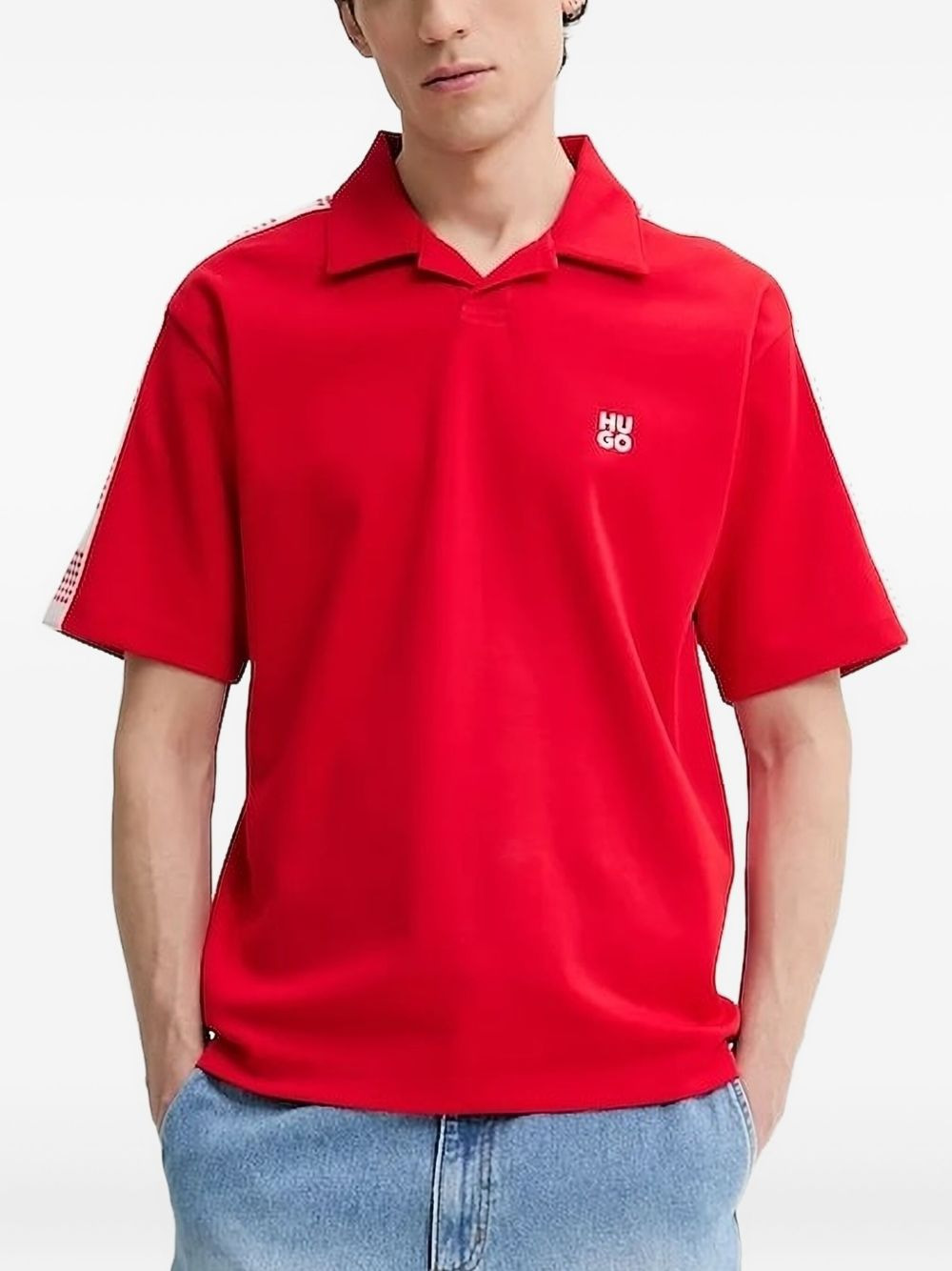 point-collar panelled polo shirt Highlights - Red - Short sleeves - Logo detail - Contrast panel - Point collar Imported Composition Cotton 52%, Polyester 48% Washing instructions Read Manufacturer Guidelines