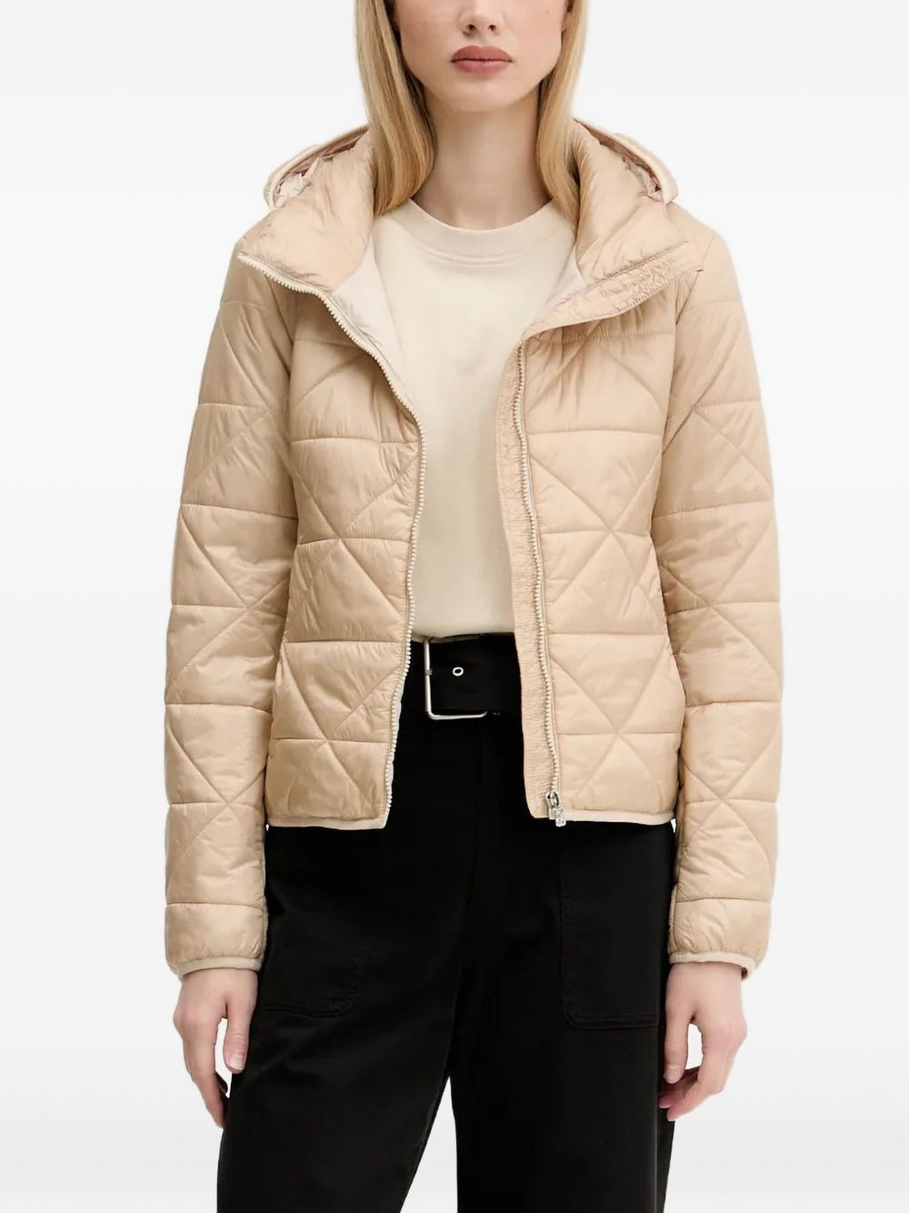 quilted hooded puffer jacket Highlights - Beige - Diamond quilting - Zip front-fastening - Hooded neckline - Long sleeves - Straight hemline Imported Composition Outer: Recycled Polyamide 100% Lining: Polyamide 100% Filling: Polyester 100% Washing instructions Read Manufacturer Guidelines