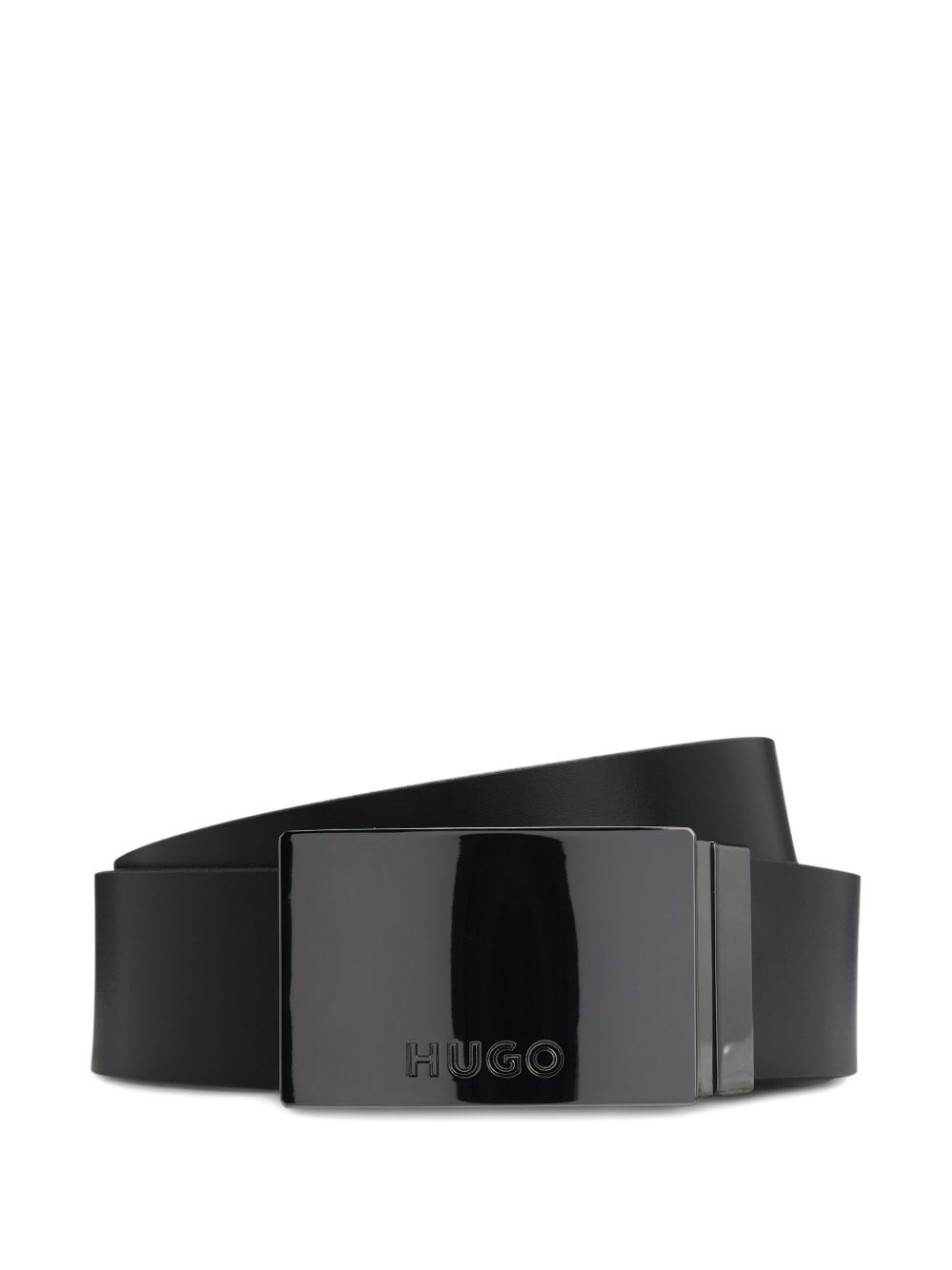 rectangular buckle leather belt Highlights - Black - Bovine leather - Rectangular buckle - Embossed logo Made in Italy Composition Bovine Leather (top grain) 100% SIZE & FIT Measurement WIDTH 1.37 in(3.5 cm) Washing instructions Read Manufacturer Guidelines