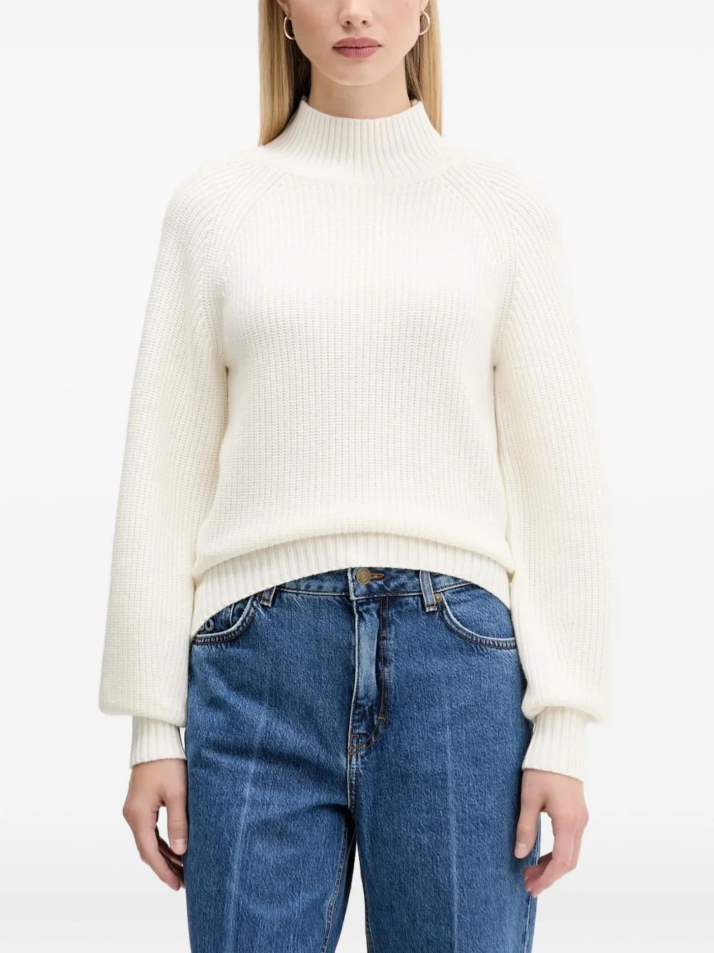 ribbed sweater Highlights - White - Ribbed knit - Logo plaque - Mock neck - Long sleeves Imported Composition Wool 47%, Viscose 38%, Polyamide 10%, Cashmere 5% Washing instructions Hand Wash