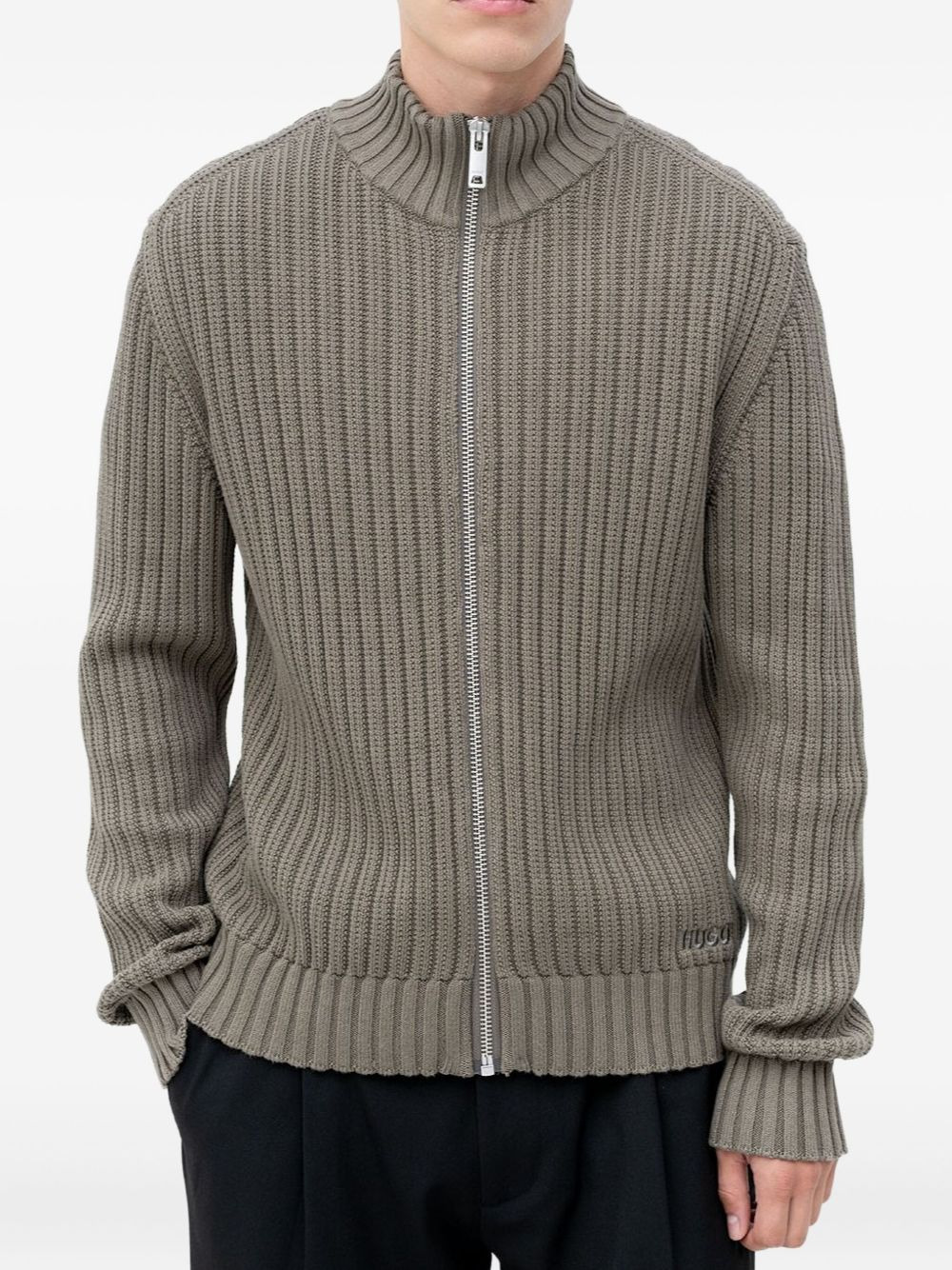ribbed zip cardigan Highlights - Grey - Ribbed knit - Zip fastening - High neck - Long sleeves Imported Composition Cotton 100% Washing instructions Machine Wash
