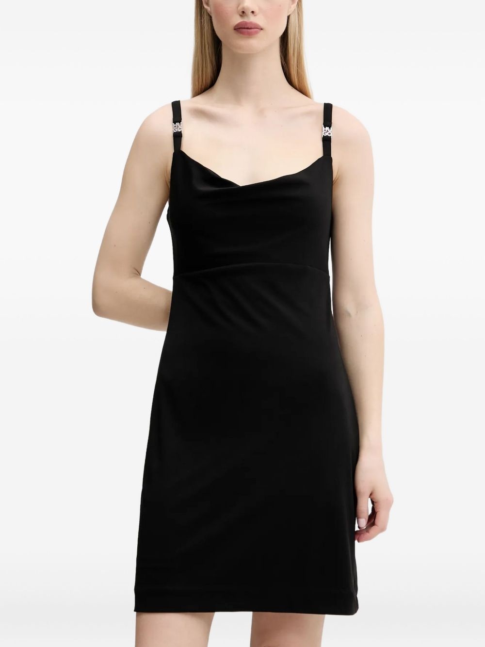scoop-neck mini dress Highlights - Black - Scoop neck - Spaghetti straps - Silver-tone hardware - Straight hem Imported Composition Lining: Polyester 100% Outer: Recycled Polyester 100% Washing instructions Read Manufacturer Guidelines