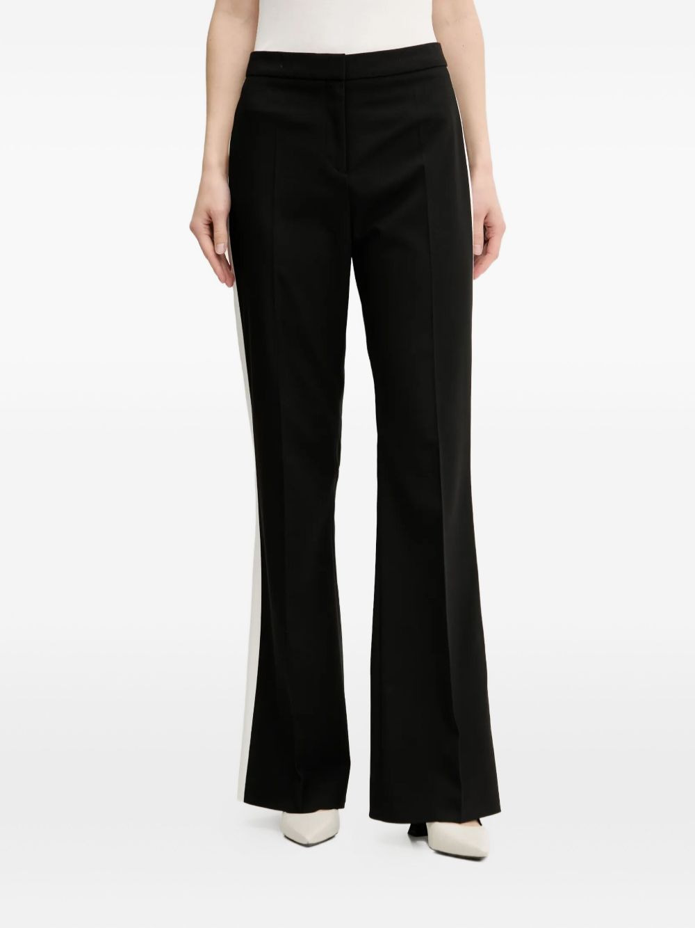 side-stripe flared trousers Highlights - Black - Flared leg - Side stripe - High waist - Straight pockets - Button fly Imported Composition Polyester 63%, Viscose 34%, Elastane 3% Washing instructions Read Manufacturer Guidelines