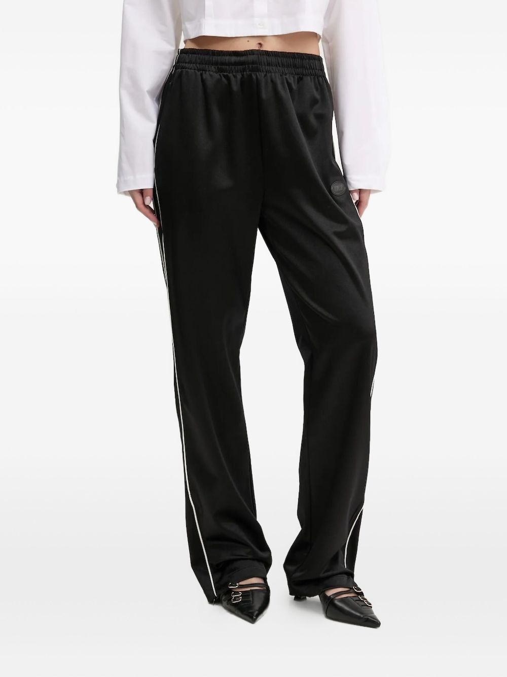 side-stripe satin trousers Highlights - Black - Satin finish - Side stripes - Elasticated waistband - Logo plaque - Straight leg Imported Composition Polyamide 90%, Elastane 10% Washing instructions Read Manufacturer Guidelines