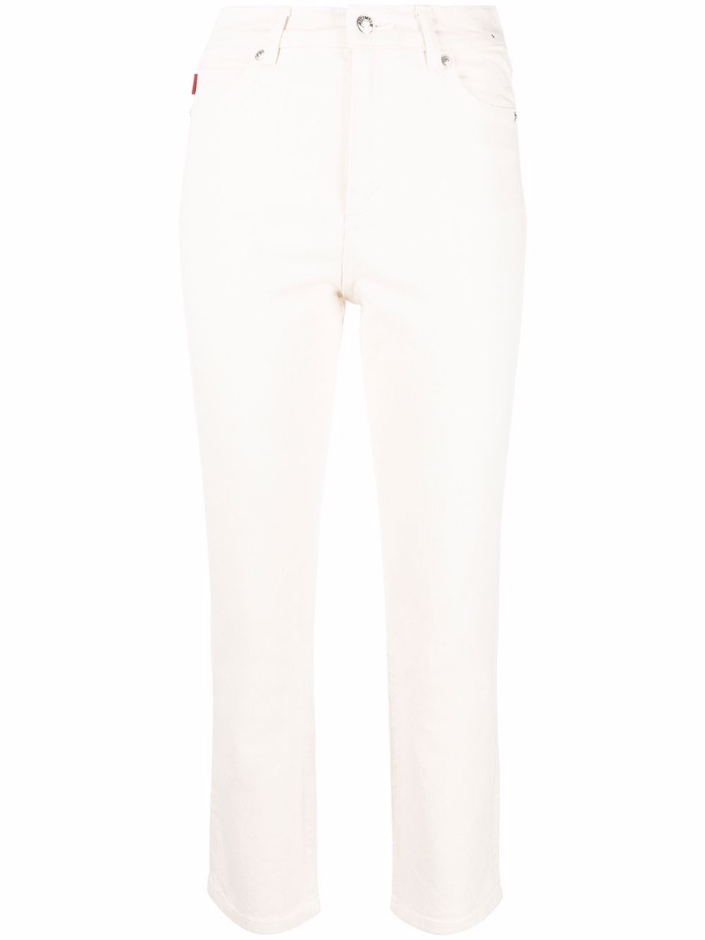 skinny cropped jeans off-white cotton-blend logo patch to the rear logo patch to the side belt loops front button and zip fastening skinny cut cropped leg classic five pockets Imported Composition Outer: Cotton 98%, Elastane 2% Lining: Polyester 57%, Cotton 40%, Elastane 3% SIZE & FIT Model measurements Height 5 ft 10 in(1.79 m) Bust/Chest 31.49 in(80 cm) Hips 35.03 in(89 cm) Waist 24.4 in(62 cm) Washing instructions Machine Wash