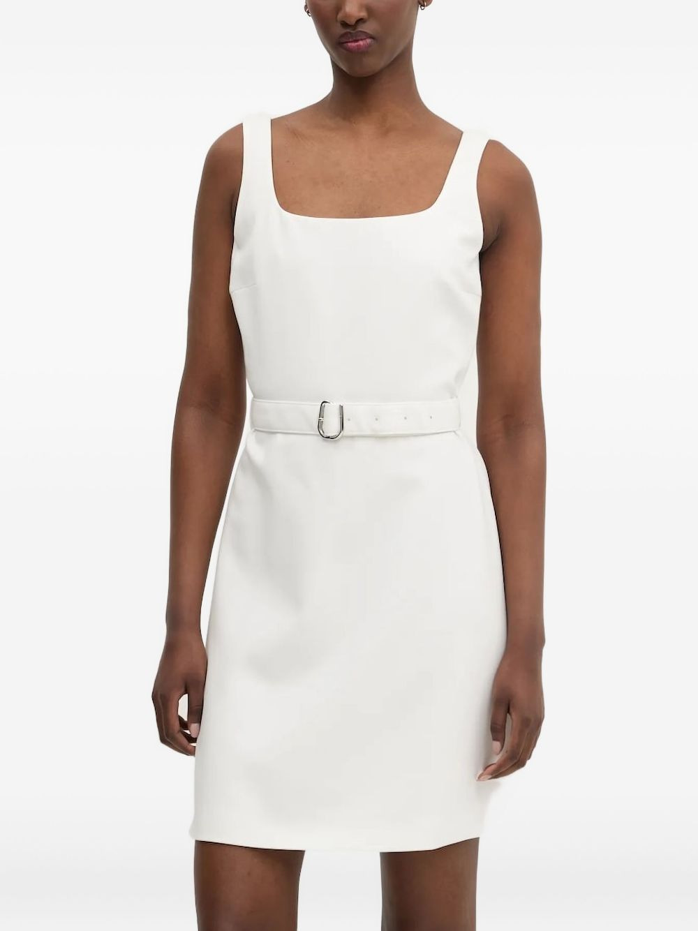 square-neck belted mini dress Highlights - White - Square neck - Sleeveless - Belted waist - Silver-tone buckle Imported Composition Outer: Polyester 64%, Viscose 31%, Elastane 5% Lining: Polyester 100% Washing instructions Read Manufacturer Guidelines