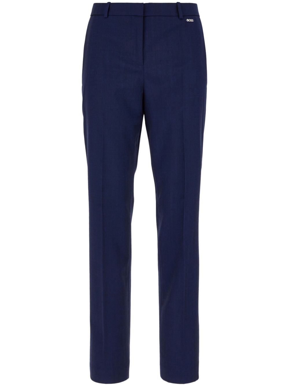 straight-leg trousers Highlights - Navy blue - Stretch-wool - Straight leg - Concealed front fastening - Belt loops - Logo plaque - Pressed crease - Rear welt pocket Made in Italy Composition Wool 99%, Elastane 1% Washing instructions Read Manufacturer Guidelines