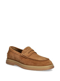 suede loafers Highlights - Camel brown - Slip-on style - Flat rubber sole - Round toe - Penny slot Imported Composition Outer: Suede 100% Lining: Leather 100% Sole: Rubber 100%