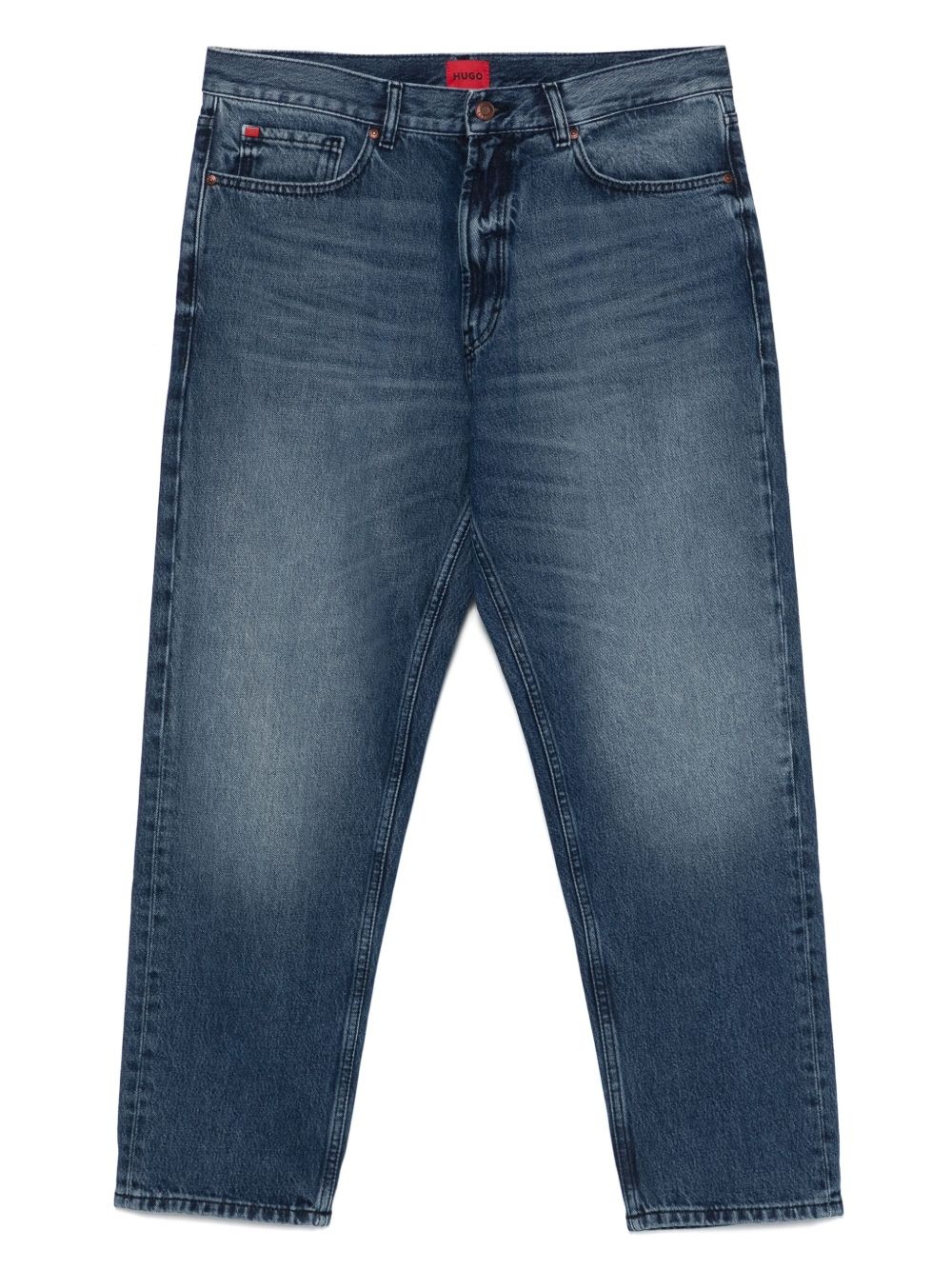 TAPERED-FIT JEANS IN BLUE VINTAGE-WASH DENIM