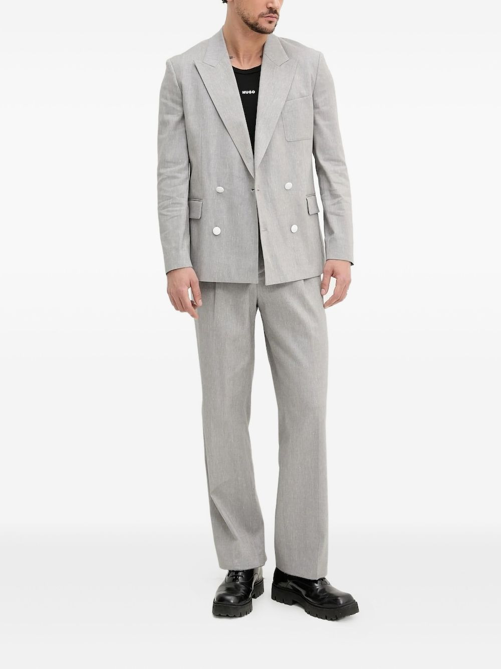 textured double-breasted suit Highlights Imported Composition Outer: Cotton 67%, Linen/Flax 30%, Elastane 3% Lining: Polyester 100%