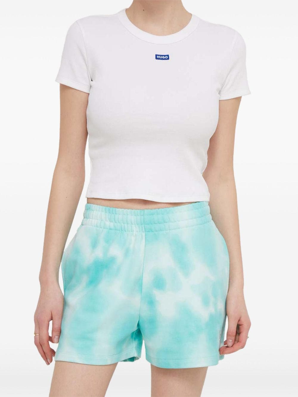 tie-dye drawstring shorts Highlights - Light turquoise - Tie-dye pattern - Embellished logo - Elasticated waistband Imported Composition Cotton 100% Washing instructions Read Manufacturer Guidelines
