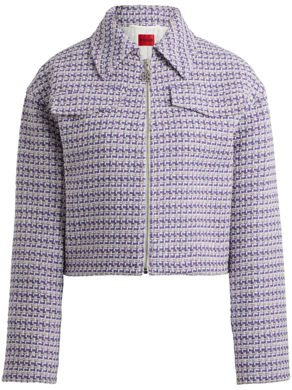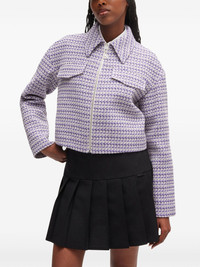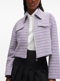 tweed cropped jacket Highlights - Lavender purple - Cotton blend - Tweed - Silver-tone logo plaque - Classic collar - Front zip fastening - Two chest flap pockets - Long sleeves - Straight hem Imported Composition Outer: Cotton 61%, Polyester 21%, Polyacrylic 13%, other fibers 5% Lining: Viscose 64%, Polyester 36% Washing instructions Dry Clean Only