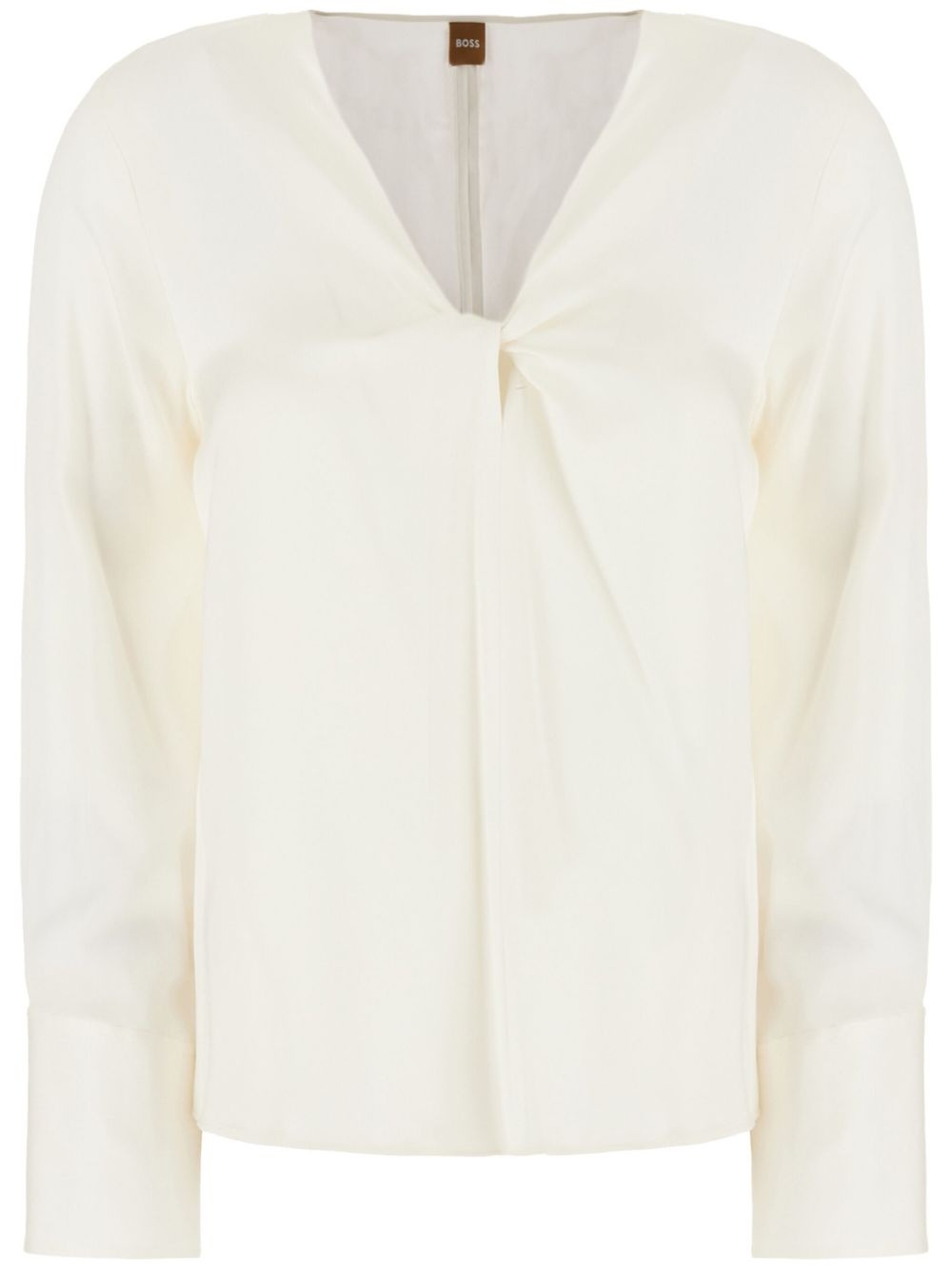 twist-front blouse Highlights - White - V-neck - Long sleeves - Buttoned cuffs - Straight hem Imported Composition Silk 90%, Elastane 10%