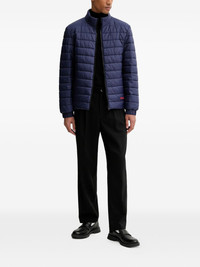 zip-fastening quilted jacket Highlights - Navy blue - Quilted design - Zip fastening - High neck - Elasticated cuffs - Side pockets Imported Composition Polyester 100% Washing instructions Read Manufacturer Guidelines