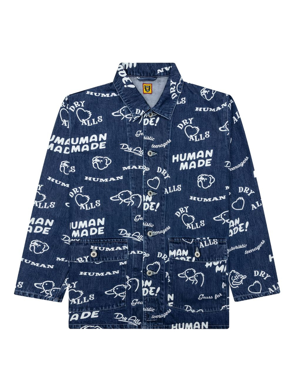 all-over print denim jacket Highlights - Dark blue - All-over logo print - Front button fastening - Front flap pockets - Classic collar Imported Composition Cotton 100% Washing instructions Read Manufacturer Guidelines