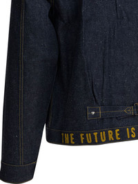 buttoned denim jacket Highlights - Blue - Yellow topstitching - Button fastening - Point collar Imported Composition Cotton 100% Washing instructions Read Manufacturer Guidelines