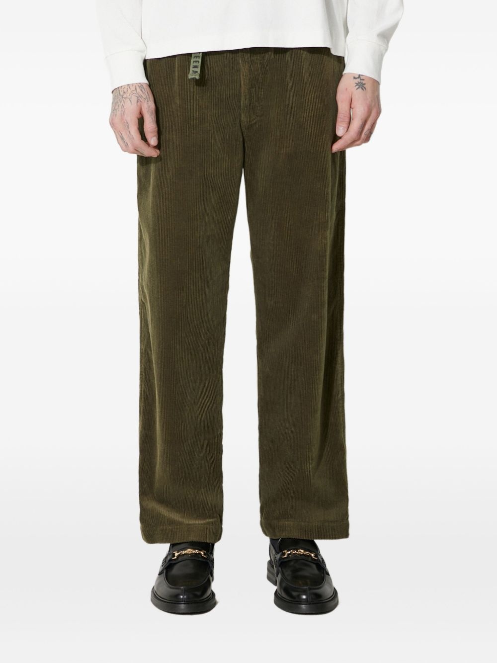 corduroy-wale trousers Highlights - Olive drab - Corduroy texture - Adjustable drawstring fastening - Welt pockets - Branded patch - Straight leg Imported Composition Cotton 100% Washing instructions Read Manufacturer Guidelines