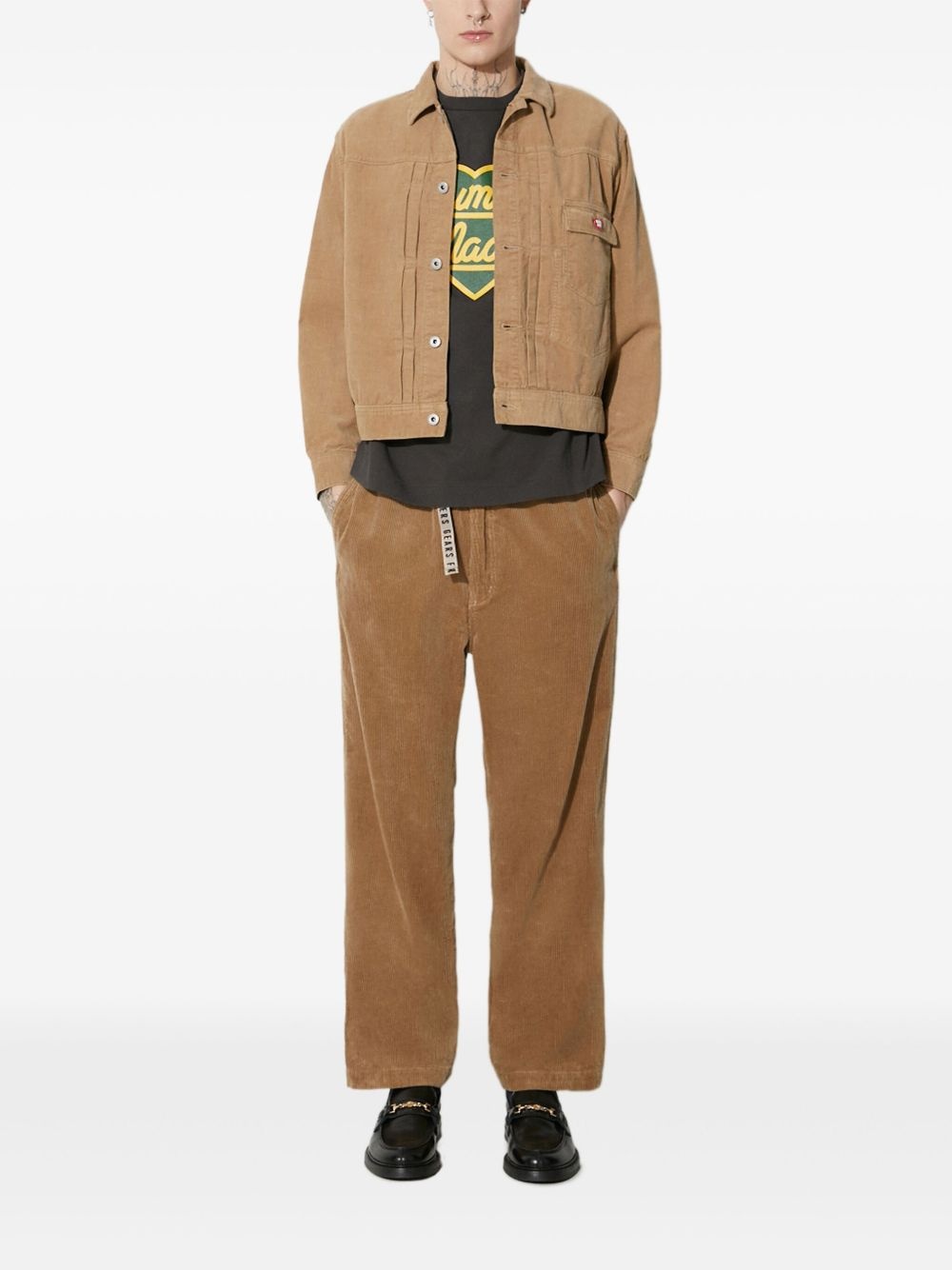 cotton straight-leg trousers Highlights - Beige - Belted waistband - Belt loops - Straight-leg - Side slit pockets - Rear welt pocket - Rear logo patch Imported Composition Cotton 100% Washing instructions Read Manufacturer Guidelines