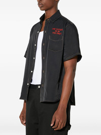 dragon-motif shirt Highlights - Black - Dragon motif - Short sleeves - Front button fastening - Chest flap pocket - Contrast stitching Imported Composition Rayon 65%, Cotton 35% Washing instructions Read Manufacturer Guidelines