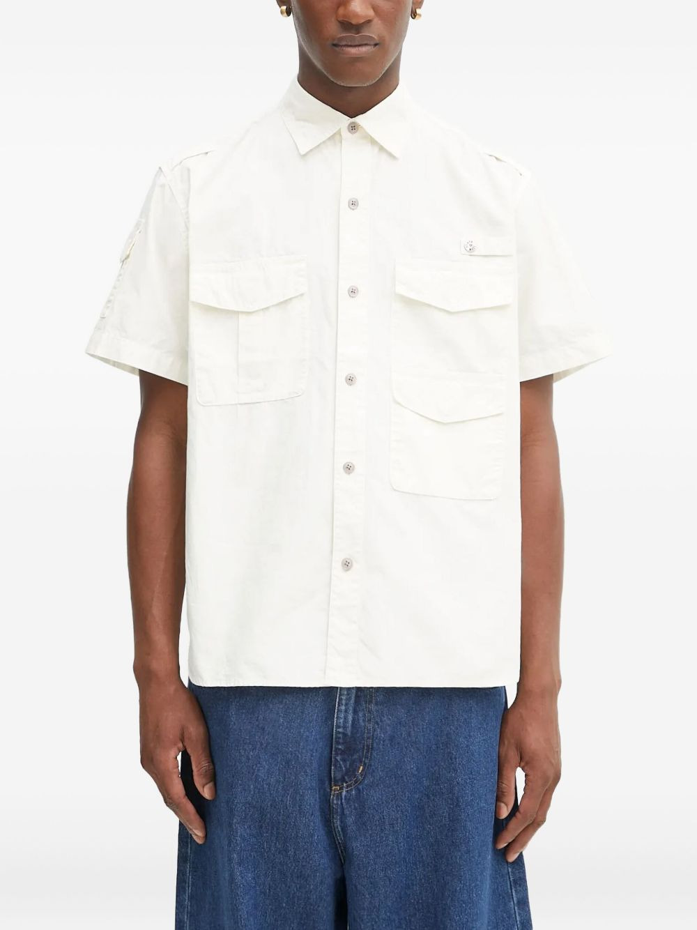 flap-pockets shirt Highlights - White - Button fastening - Short sleeves - Two chest flap pockets - Logo patch on the sleeve Imported Composition Cotton 100% Washing instructions Read Manufacturer Guidelines