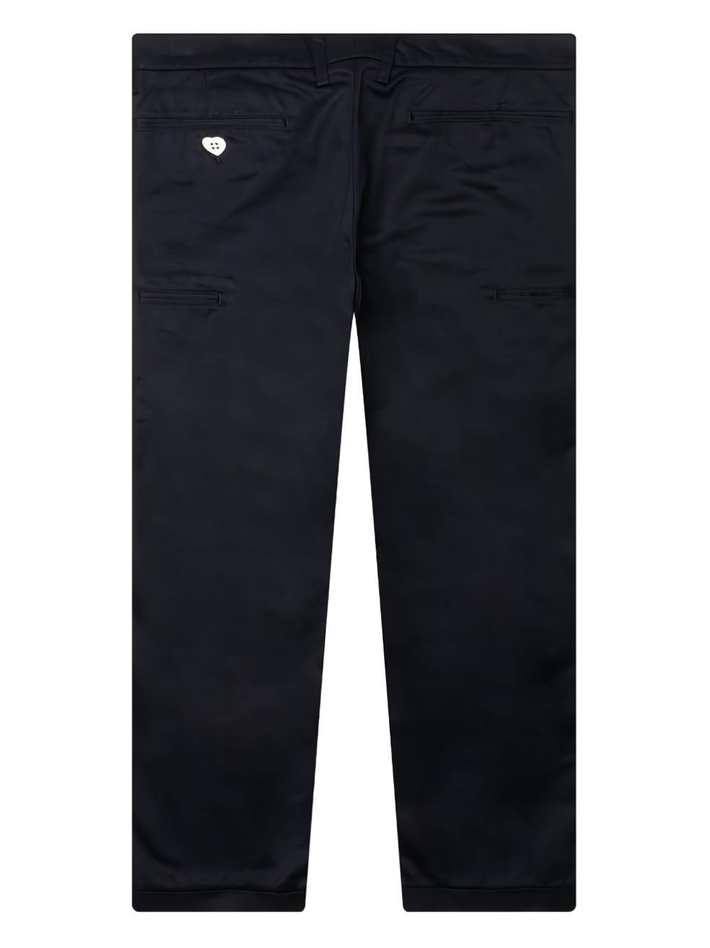 heart-embroidered chinos Highlights - Navy blue - Twill weave - Heart-shaped button - Embroidered heart logo - Front slant pockets - Back welt pockets Made in United States Composition Cotton 100% Washing instructions Read Manufacturer Guidelines
