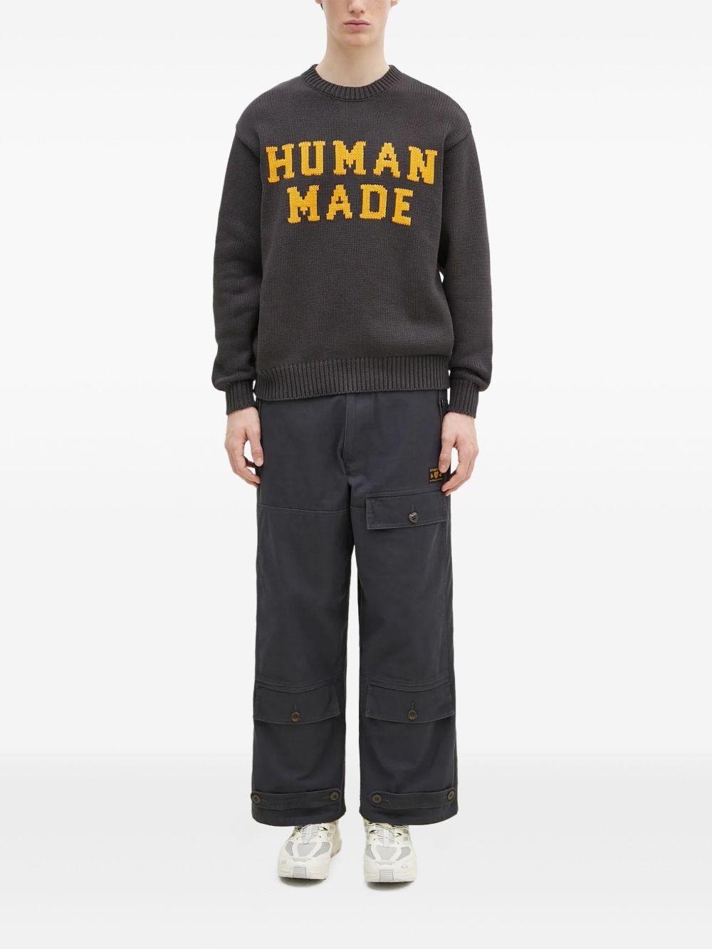 logo-intarsia sweater Highlights - Charcoal grey - Intarsia logo - Crew neck - Ribbed-knit edge Imported Composition Cotton 100%
