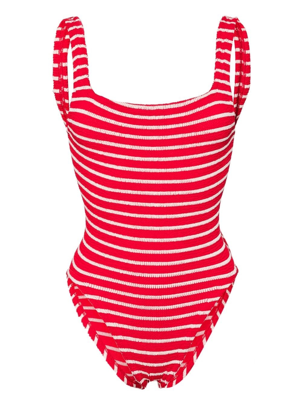 candy-stripe crinkled swimsuit Highlights - Red/white - Crinkled finish - Candy stripe pattern - Square neck - Sleeveless - Low back - Unlined - Be mindful to try on swimwear over your own garments. Imported Composition Polyamide 69%, Recycled Polyester 28%, Lycra 3% SIZE & FIT Measurement BUST 23.62 in(60 cm) HIPS 17.32 in(44 cm) LENGTH 25.59 in(65 cm) WAIST 19.68 in(50 cm)