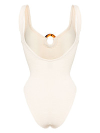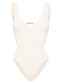 Celine crinkle swimsuit Highlights - Blush beige - Stretch-design - Crinkled finish - Ring hardware detailing - Scoop neck - Wide shoulder straps - Low back - Be mindful to try on swimwear over your own garments. Imported Composition Polyamide 97%, Elastane 3%