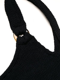 Domino scoop-neck swimsuit Highlights - Jet black - Stretch-design - Crinkled finish - Thin shoulder straps - Scoop neck - Scoop back - High cut - Be mindful to try on swimwear over your own garments. Made in United Kingdom Composition Nylon 96%, Elastane 4% SIZE & FIT Measurement BUST 11.41 in(29 cm) HIPS 9.44 in(24 cm) LENGTH 25.19 in(64 cm) WAIST 9.25 in(23.5 cm) Washing instructions Hand Wash