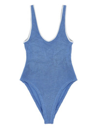 Faye swimsuit Highlights - Light blue - Sleeveless - Open back - Be mindful to try on swimwear over your own garments. Imported Composition Polyamide 97%, Lyocell 3% Washing instructions Read Manufacturer Guidelines