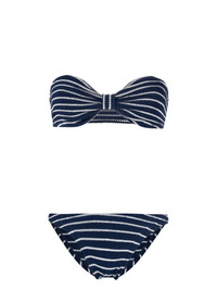 Jean striped bikini Highlights - Navy blue - Horizontal stripe pattern - Crinkled finish - Slip-on style - Top: - Strapless - Bandeau style - Bottoms: - Mid-rise - Classic bottoms - Be mindful to try on swimwear over your own garments. Made in United Kingdom Composition Polyamide 78%, Recycled Polyester 19%, Lycra 3% SIZE & FIT Measurement BUST 23.62 in(60 cm) WAIST 23.62 in(60 cm)
