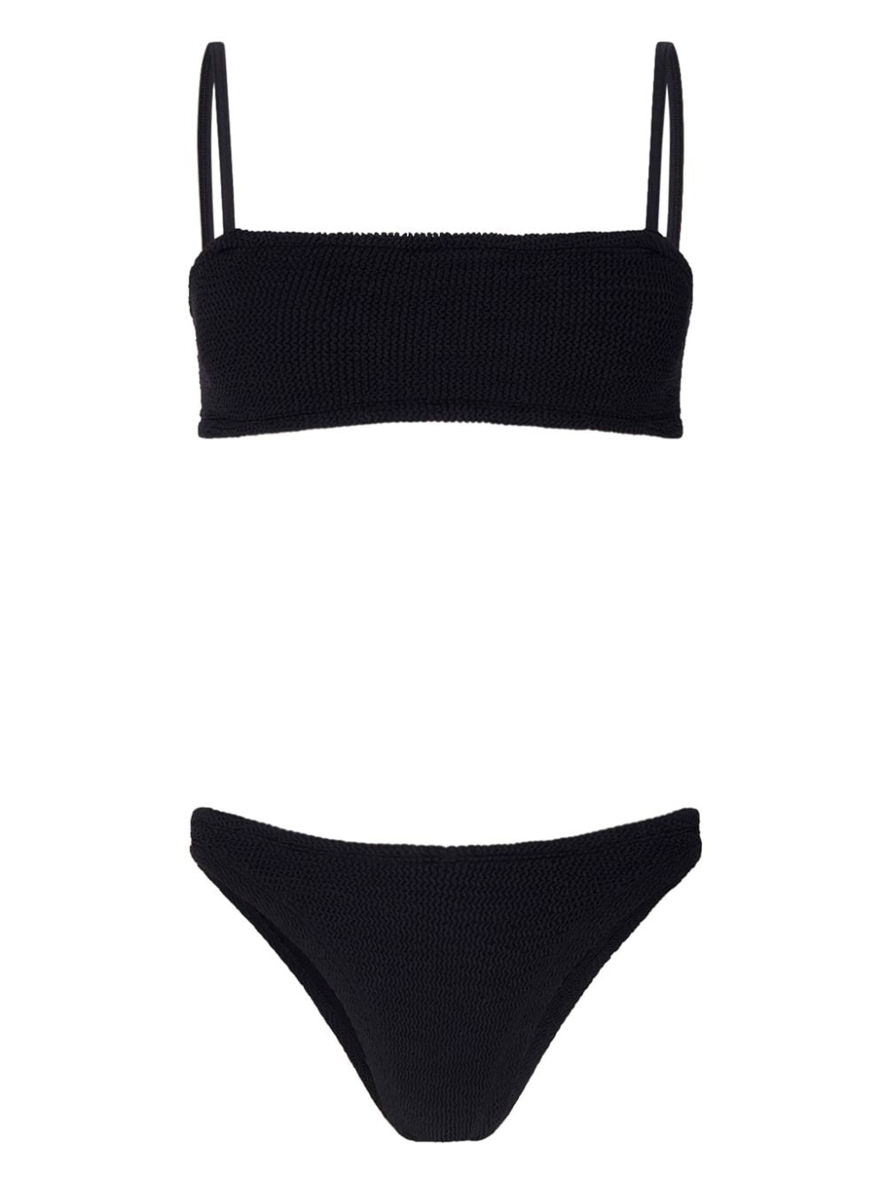 knitted bandeau bikini Highlights - Black - Knitted construction - Spaghetti straps - Bandeau style - Be mindful to try on swimwear over your own garments. Made in United Kingdom Composition Polyamide 88%, Spandex/Elastane 12% SIZE & FIT Measurement BUST 20.47 in(52 cm) WAIST 23.62 in(60 cm) Washing instructions Hand Wash