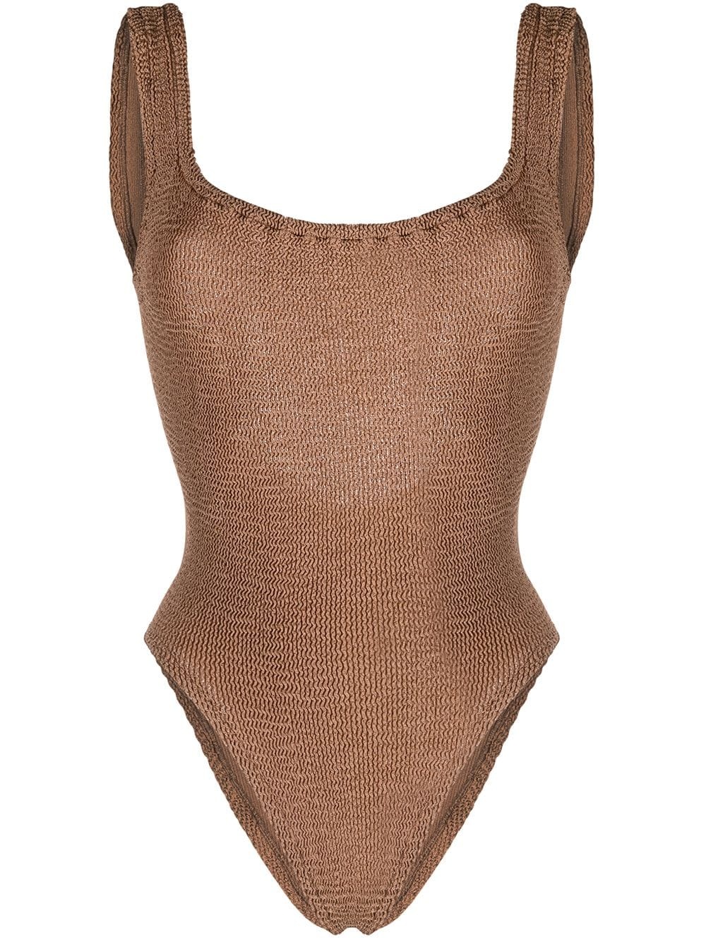 knitted low-back swimsuit Highlights - Metallic chocolate - Knitted construction - Sleeveless - Open back - Be mindful to try on swimwear over your own garments. Imported Composition Polyamide 88%, Spandex/Elastane 12% SIZE & FIT Measurement LENGTH 25.59 in(65 cm) Washing instructions Hand Wash
