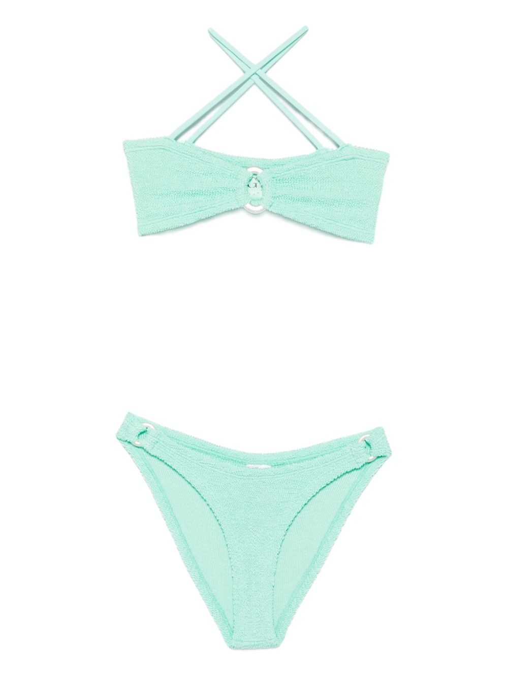 Misty crinkle metallic bikini Highlights - Light green - Metallic effect - Cross straps - Ring detail - Bandeau top - Low-rise briefs - Be mindful to try on swimwear over your own garments. Imported Composition Polyamide 97%, Elastane 3% Washing instructions Machine Wash