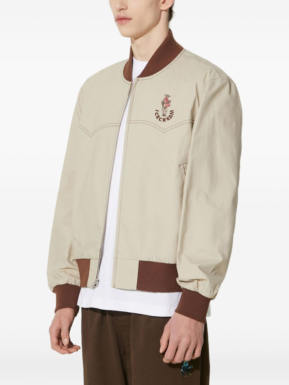 logo-embroidered bomber jacket Highlights - Beige - Embroidered logo - Ribbed cuffs and hem - Stitching detail - Zip fastening Imported Composition Cotton 100%