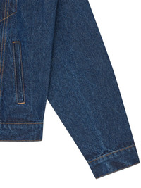 logo print denim jacket Highlights - Indigo blue - Front button fastening - Two button-fastening chest pockets - Two side slit pockets - Logo print to the rear Imported Composition Cotton 100%