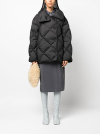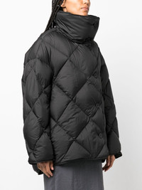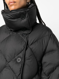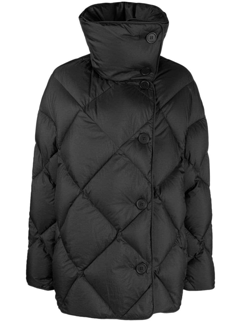 Cozy Queen stand-up collar puffer jacket Highlights - Black - Water-repellent - Quilted - Torchon piping detail - Stand-up collar - Front button fastening - Long sleeves - Two side slash pockets - Straight hem Imported Composition Lining: Nylon 100% Outer: Nylon 100% SIZE & FIT Model measurements Height 5 ft 10 in(1.78 m) Bust/Chest 33.07 in(84 cm) Hips 36.61 in(93 cm) Waist 24.8 in(63 cm) FittingInformation Designed to be unstructured, offering a loose fit throughout Made from a quilted non-stretch fabric, giving it no natural elasticity This piece fits true to size – take your usual size Washing instructions Dry Clean Only