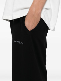 logo-print track trousers Highlights - Black - Elasticated waistband - Two side inset pockets - Two rear patch pockets Made in Italy Composition Cotton 100% SIZE & FIT Model measurements Height 6 ft 1 in(1.86 m) Bust/Chest 33.46 in(85 cm) Hips 35.43 in(90 cm) Waist 31.1 in(79 cm) FittingInformation Designed for a tapered leg, offering a loose unrestricted fit over the leg with a closer fit towards the ankle The elasticated hem at the ankle allows for movement and a comfortable fit Made from a midweight non-stretch fabric, this piece offers minimal elasticity when worn Washing instructions Hand Wash